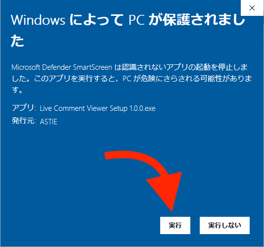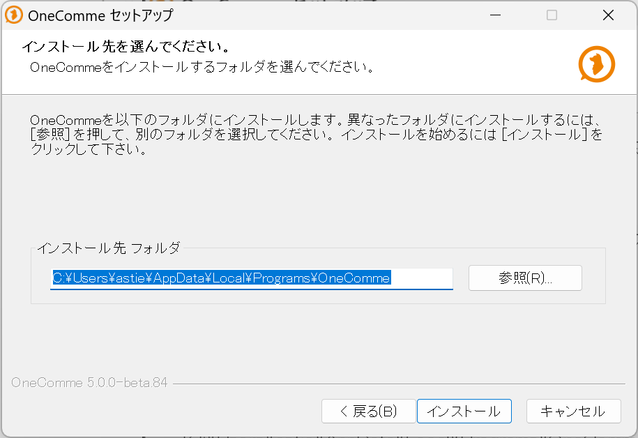 ダウンロードしたOneCommeSetup-x64-(バージョン名).exeを開くと