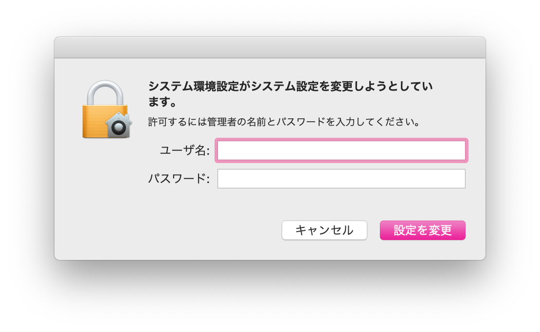管理者アカウントでない状態で、設定にロックが掛けられているなどの場合には認証を求められることが あります