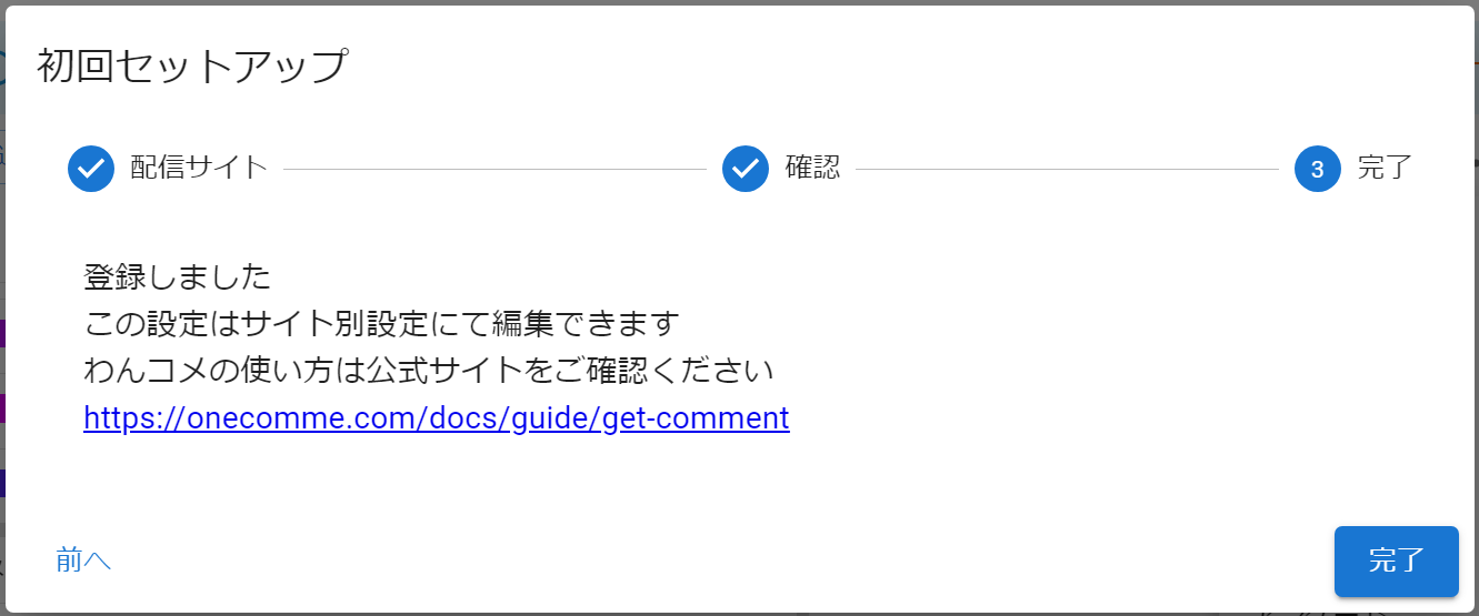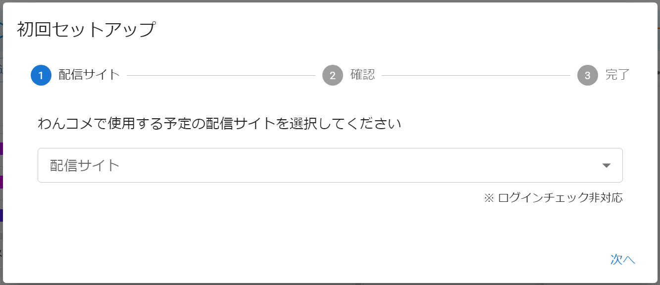 わんコメを初めて起動した際に配信する予定のサイトを登録する画面が表示されます