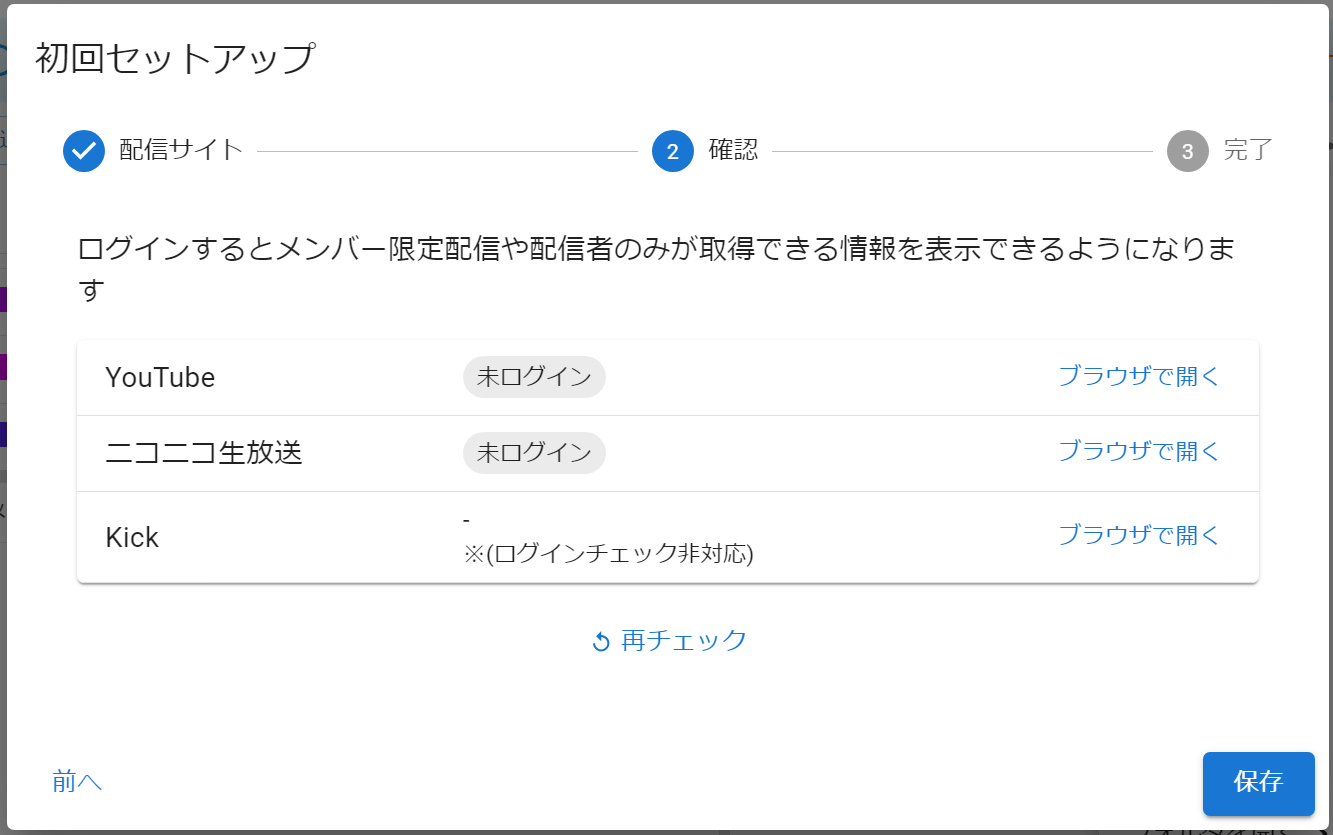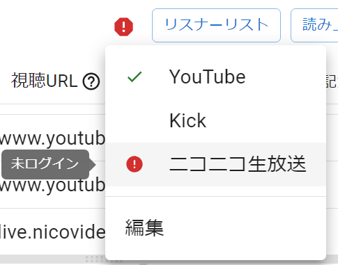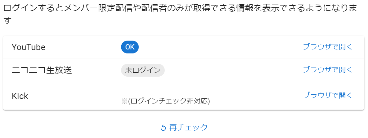 配信予定のサイトを登録してログインすることで取得可能なコメント(YouTubeの保留コメント)や限定配信のコメントが取得可能になりますので、あらかじめ登録しておくことをオススメします