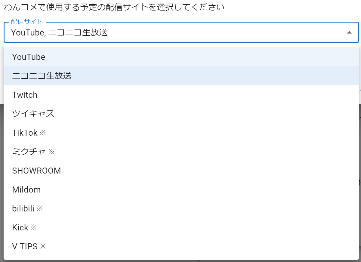 ※がついている配信サイトはログイン状態のチェック非対応のためログインいるかどうかはわんコメではわかりません