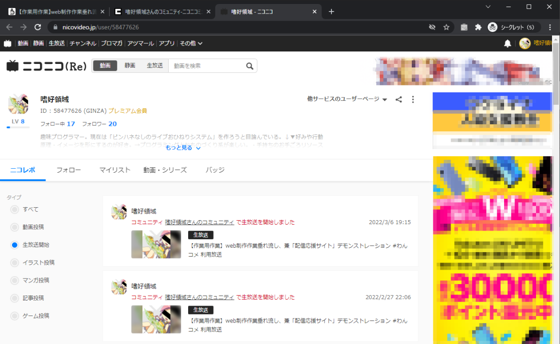 ※限定配信はこのURLでは取得できません(ログインしている場合のみメンバー限定配信は取得できます)